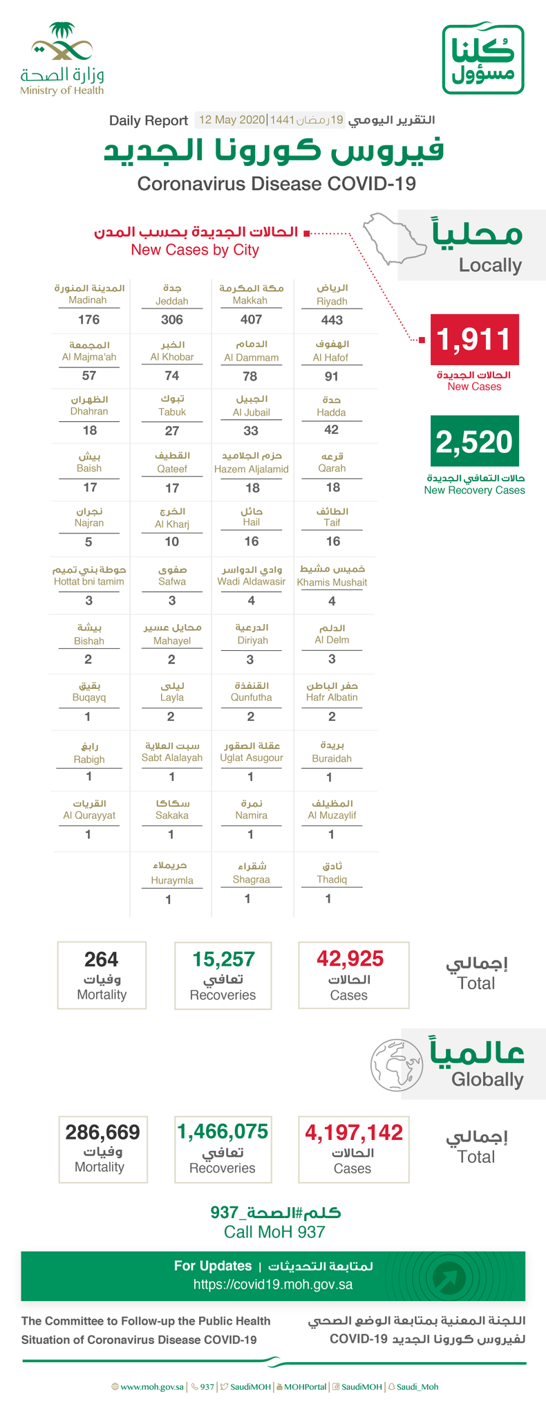 احصائيات فيروس كورونا بالسعودية يوم الثلاثاء 19/ 9 / 1441 هـ