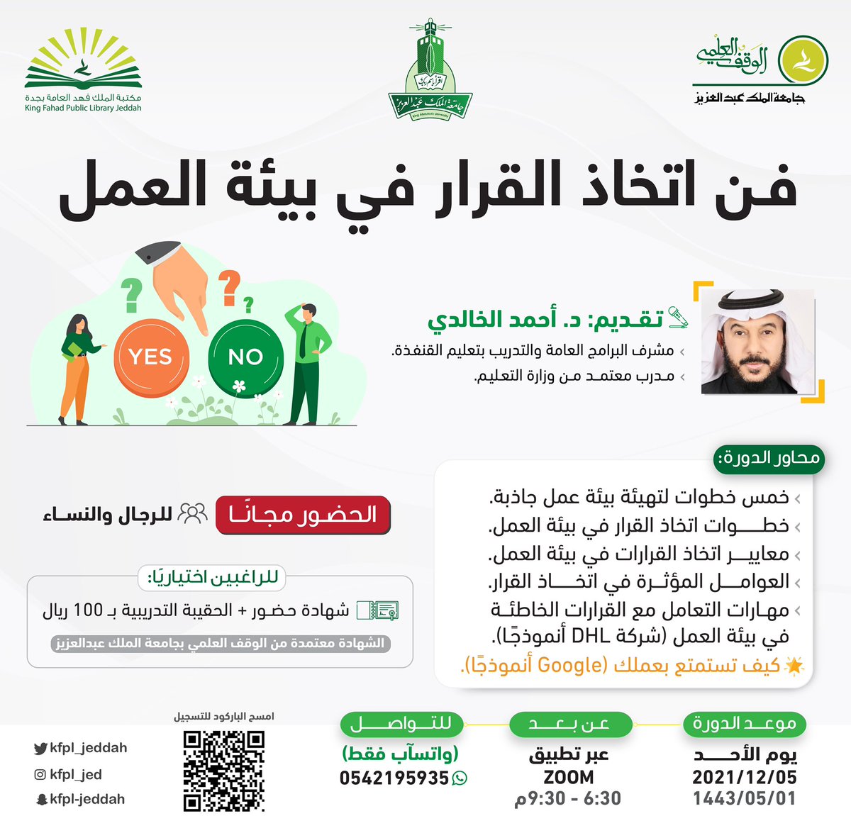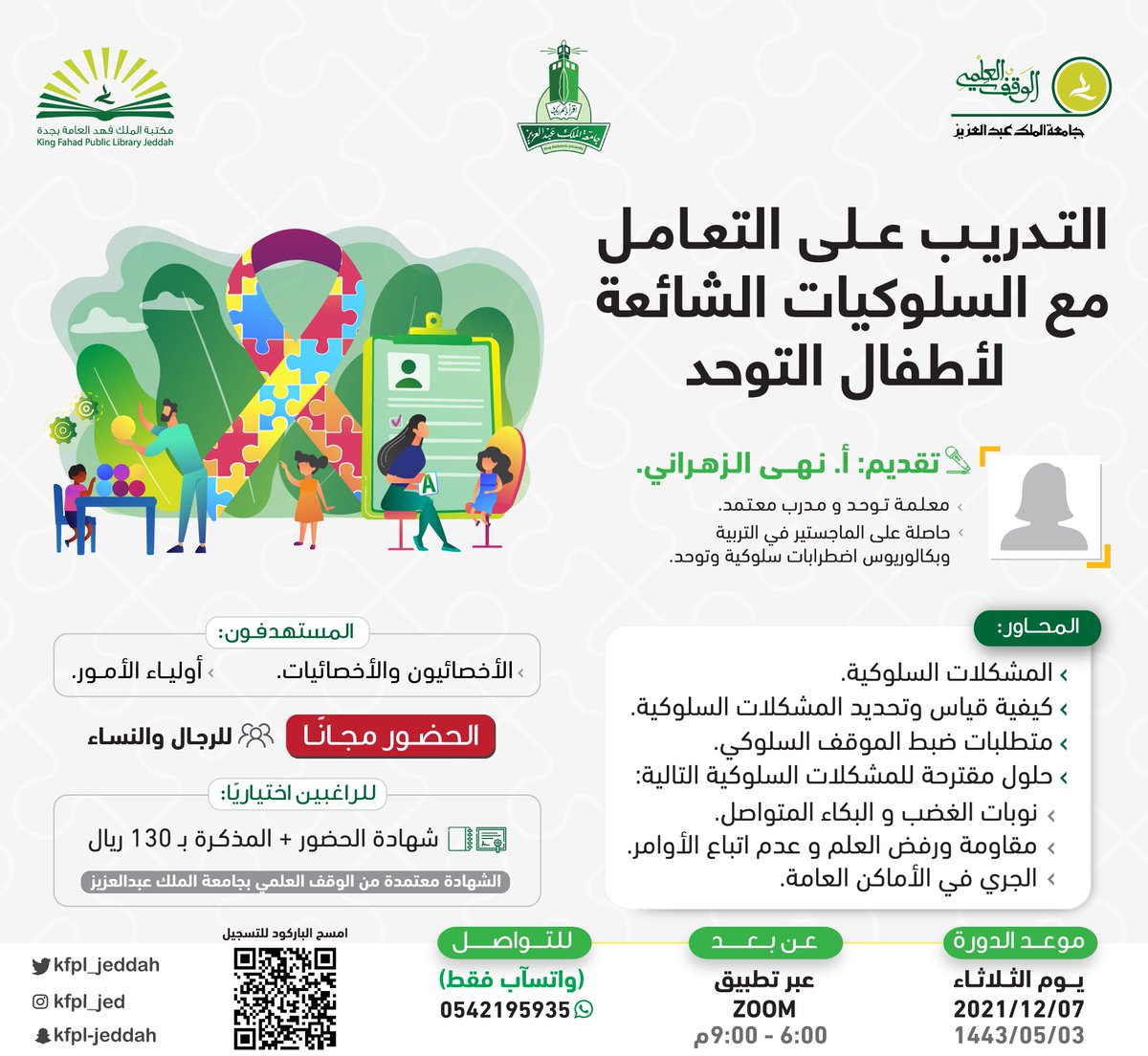 مكتبة الملك فهد العامة اعلنت ضمن سلسلة تطوير المهارات عن إقامة دورات تدريبية عن بُعد بعدة مجالات تدريبية بمحافظة جدة وسوف يكون حضور الدورة مجاني والشهادة اختيارية برسوم وذلك وفق المعلومات والتفاصيل المدونة والموضحة بموقع وظائف المواطن ادناه :