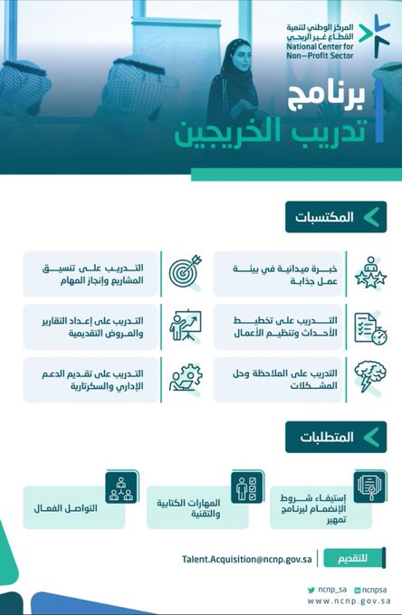 المركز الوطني لتنمية القطاع الغير ربحي يعلن التسجيل في برنامج تدريب الخريجين 2022م