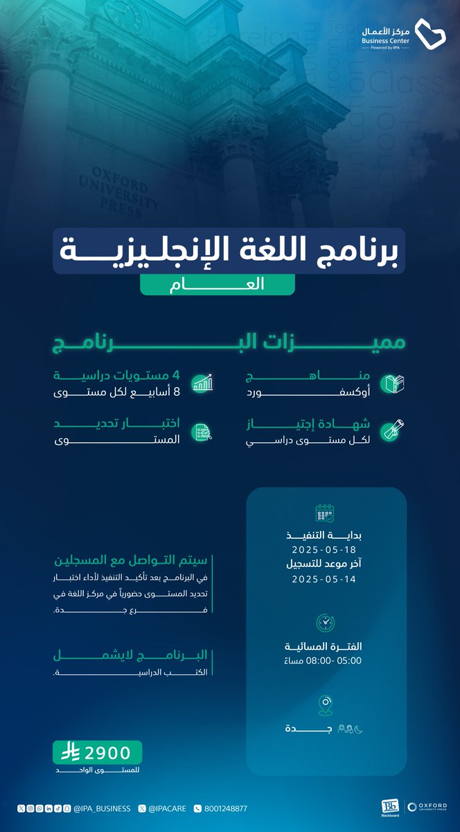 اعلن معهد الإدارة العامة مُمثلاً في مركز الأعمال فتح التسجيل (رجال / نساء) في برامج اللغة الإنجليزية 2025م، وذلك وفقاً للتفاصيل وطريقة التسجيل الموضحة أدناه.